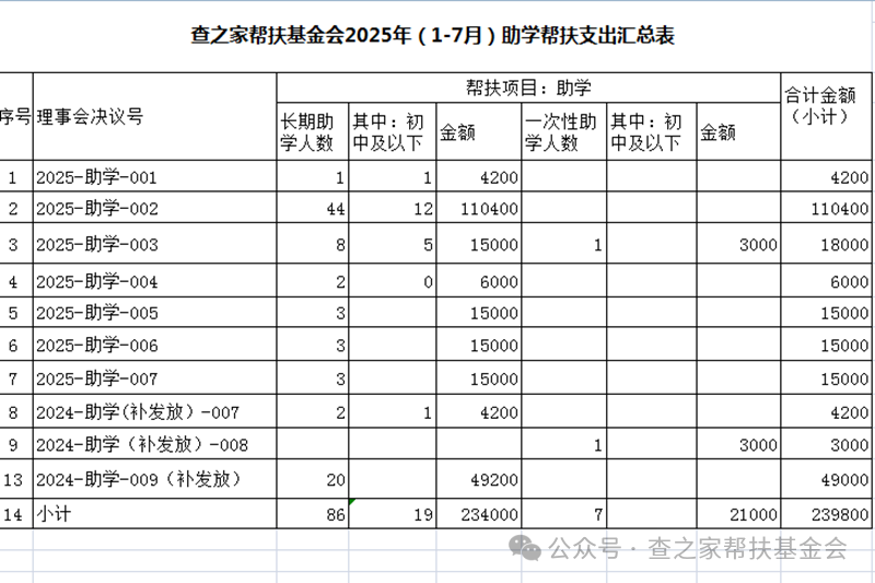 春节假期刚过,基金会就着手安排了在助学生2025 年 1 月至 7 月的助学金发放工作,发放严格按规范化标准化进行。